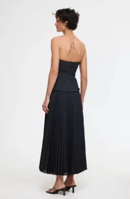 A timeless silhouette, the Bristol Midi Dress in Black is perfect for your events this season. A strapless design, featuring pleating through the skirt and abstract stitching through the bodice. Pair back with a simple heel for a complete look.