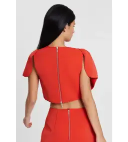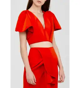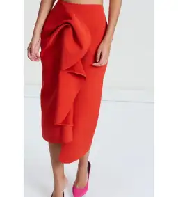 Acler Crawford Top and Ruffle Midi Skirt Set Tangerine Red Size AU 8 Christmas