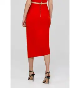 - Midi length, high-waist fit, and a polished finish ideal for cocktail or event dressing