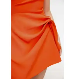 The Eddington Mini Dress in Apricot is designed to be fitted throughout. Crafted from our classic bonded fabrication, this silhouette feature a drop shoulder, soft gathers across the hip and 3D pin and tuck detail. Pair back with a simple heel for a complete look.