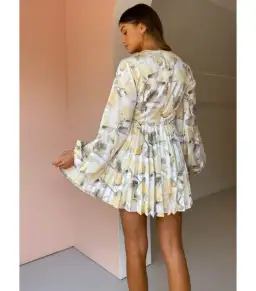 Embrace modern femininity in the Faris Dress in Hydrangea Garden by Acler. Meticulously constructed in a sweet Hydrangea printed fabrication, this mini dress features billow long sleeves and a feminine plunging V-neckline which falls into an elegantly pleated mini hemline.Detailed with self covered buttons under the bust, the Faris Dress will have you floating from birthday celebrations into wedding festivities with ease.