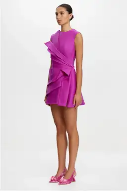 The Kenley Mini Dress in Amethyst is a sculptural silhouette designed in textured slub fabric. Featuring a sleeveless design, this mini dress showcases structured panel detailing through the bodice and skirt for a flattering fit. A back zip closure ensures ease of wear, while full lining provides a smooth silhouette.