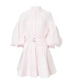 A signature silhouette revisited, this shirt dress is crafted from a semi-sheer Cotton in a blush pink hue. Designed to sit slightly fitted at the elasticated high neckline, it features a button front closure, long accentuated cuffed sleeves and panel detailing throughout which creates soft gathers.