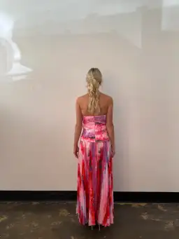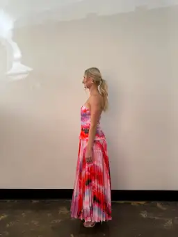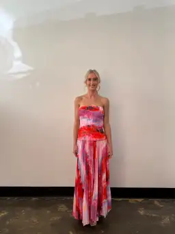 Make a statement in the Rockland Midi Dress in Voilet Canvas, a classic silhouette with feminine structure and a bold unique print. This strapless midi is crafted with a stitch-detailed bodice that accentuates the waist before falling into a softly pleated skirt. Designed for effortless event dressing, it's finished with a centre back zip closure and full lining for comfort and support.