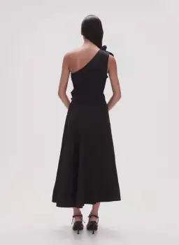 An elegant piece with timeless appeal, this midi dress features a ruched bodice with a full, floating skirt and subtle side pockets.