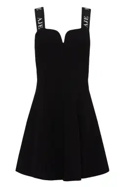 This knit mini dress features a fit-and-flare bell silhouette and boned V-neckline. Finished with a metal logo at centre back and self tie logo tape shoulder straps, this is a quintessential piece for logo lovers.