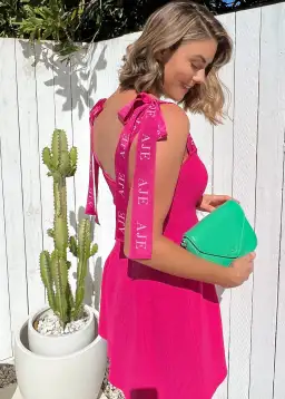 Aje Amber Knit Tie Shoulder Mini Dress Pink