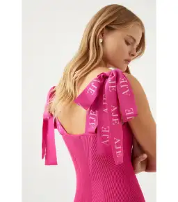Aje Amber Knit Tie Shoulder Mini Dress in Fuchsia Size S/Au 8