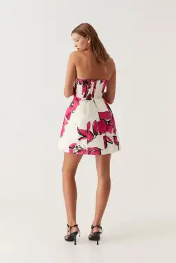 Aje Baret Strapless Mini Dress Falling Florals Size 10