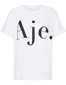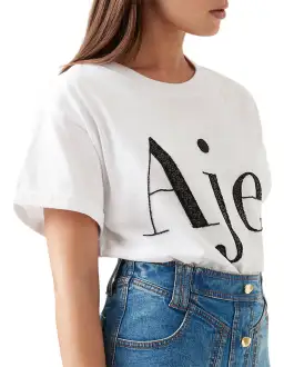 Aje Belmond Mini Skirt in Denim Blue Size 8 and Logo Tee White Print Size 6 Set