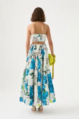 Aje Botanical Tiered Maxi Dress Cool Camelia Blue White Floral Size AU 10