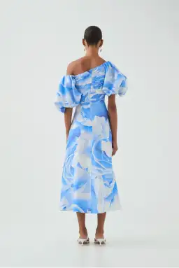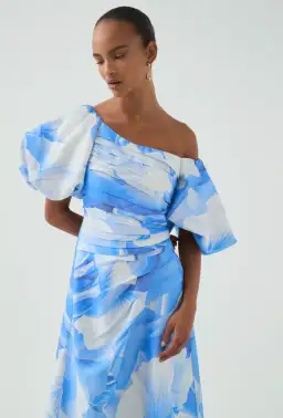AJE CADENCE RUCHED MIDI DRESS in FLORAL BLUE SIZE 12
