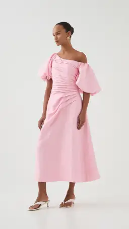 Aje Candence Ruched Midi Dress in Ballet Pink Size 12
