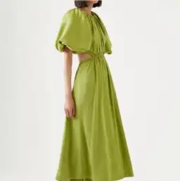 AJE Capucine Puff Sleeve Midi Dress in Verdant Green Size 8