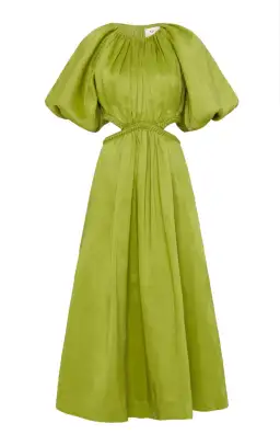 Aje Capucine Puff Sleeve Midi Dress in Verdant Green