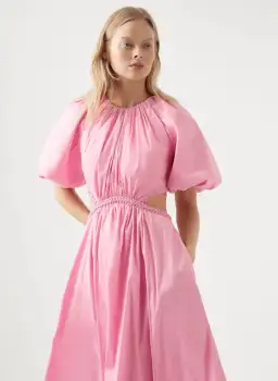 Aje Capucine Puff Sleeve Midi Dress Bon Bon Pink Size 6