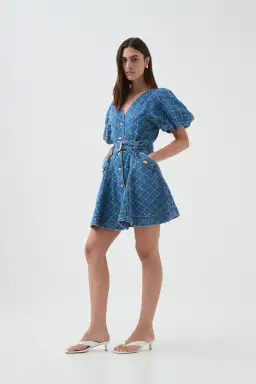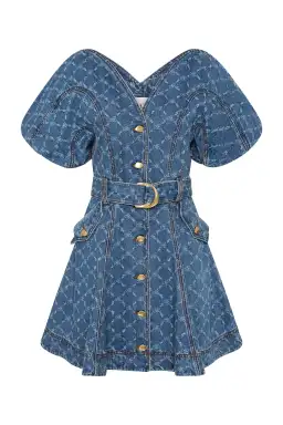 Aje Check Denim Mini Dress Diamond Logo Wash Size AU 14