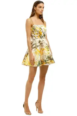 In a beautiful quilted texture fabrication, this Whiteley Blossom Tree print mini dress by AJE is the perfect trans-seasonal piece to hire! Featuring rouleau straps with a straight neckline, it falls into a full mini skirt for a flirty look! It’s perfect for an upcoming party or daytime date occasion.