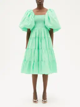 Aje's playful use of volume and colour defines this mint-green Cherished dress with a party-ready air, shaped with exaggerated puff-sleeves and a figure-sculpting shirred bodice.