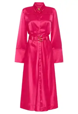 Aje Echo Belted Midi Shirt Dress Hot Pink Size 10
