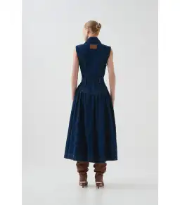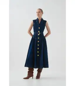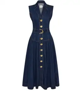 Aje Elena Belted Denim Midi Dress Dark Classic Wash Size AU 8