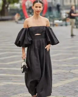 A strapless midi dress with a curved neckline, fitted bodice with a cut out and boning and off-the-shoulder puff sleeves. Wear the Aje Eugenie Off Shoulder Midi Dress with heels or sandals for statement dressing.