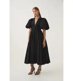 Aje Fallingwater Ruched Midi Dress Black Size XXL/AU 16