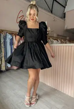 Raw cut binding creates a signature feel against corset panelling, grounded by a square neckline and puff shoulders. The Fleur Corset Long Sleeve Mini Dress echoes memorable contrasting with a gathered skirt sitting against a fitted bodice.