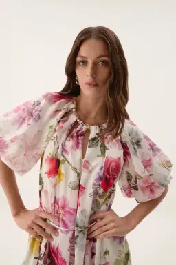 Aje Fleur Midi Dress in Collage Floral Size AU 14