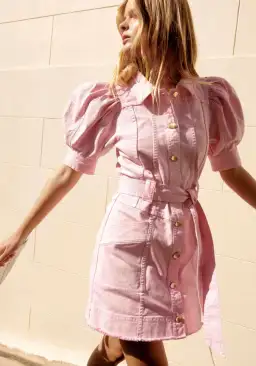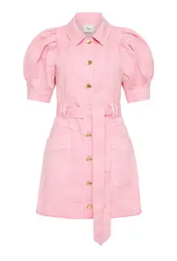 Aje Flora Denim Puff Sleeve Mini Dress Pink Size 8