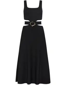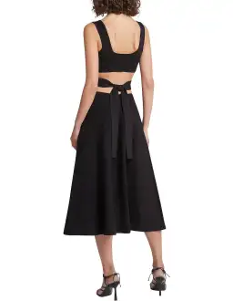 Crepe knit, fitted bodice - Squared neckline - Cut out detail at the sides and open back - Organic Aje hardware detailing -