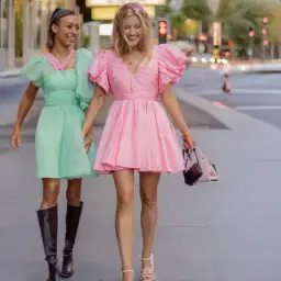 Gretta Bow Back Short Mini Dress in Ballet Pink