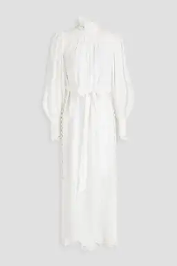 Zimmermann Guipure Lace Trimmed Linen Midi Dress White Size 2 / Au 12