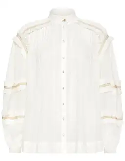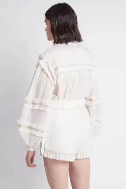 - Blouson sleeve with ruffle detail and grosgrain - Model wears a size 8/S
