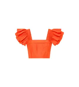 Aje Imagination Frill Sleeve Top Orange Size 14 & Yves Midi Skirt Size 12