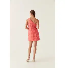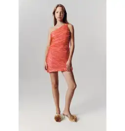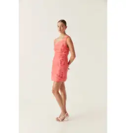 Aje Iridescent Mercury Mini Dress in Coral Size AU 8