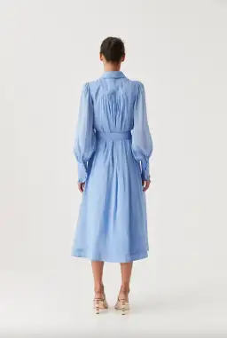 Aje Iris Pleated Bib Midi Dress Mist Blue Size AU 10