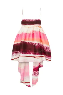 AJE Kasbah Sunset Stripe Ruched Bow Back Mini Dress Print Size 8