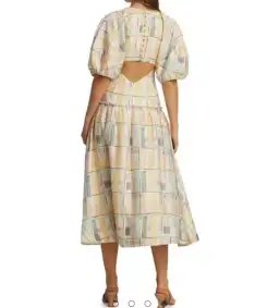 An elegant corset-inspired waist and back cutout detailing meet a light and summery abstract check and midi length skirt in the L'Espirit Corset Dress.