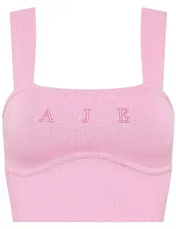 Aje Livadi Lucia Knit Logo Top in Pink