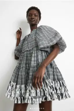 The Memento Smock Mini Dress reflects a blend of masculine and feminine temperaments. In an iconic Aje smock shape, the puff sleeves are an eye-catching detail. The contrasting detail on the hem is a special nod to craftsmanship. Mini smock dress - Voluminous balloon sleeve - Contrast ruffle detail along hem - Keyhole button opening at the front.