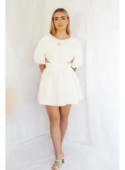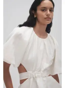The puff sleeves, waist cut outs, self tie belt and side seam pockets are signature Aje design details that make up the Mimosa Cut Out Mini Dress. Imagined in a lightweight, floaty silhouette, this romantic mini is perfect for any occasion.