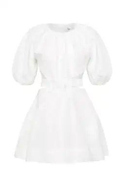 The puff sleeves, waist cut outs, self tie belt and side seam pockets are signature Aje design details that make up the Mimosa Cut Out Mini Dress. Imagined in a lightweight, floaty silhouette, this romantic mini is perfect for any occasion.