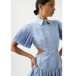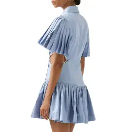 Aje Mythos Pearl Waist Mini Dress Steel Blue Size AU 10