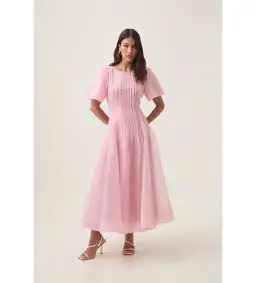 Aje Nova Pleated Dress Chalk Pink Size 4