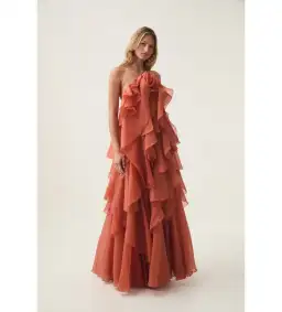 Aje Pandorea Layered Maxi Dress Coral Clay Size 6