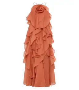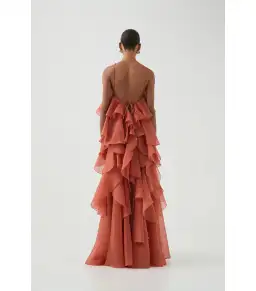 Aje Pandorea Layered Maxi Dress Coral Clay Size AU 6