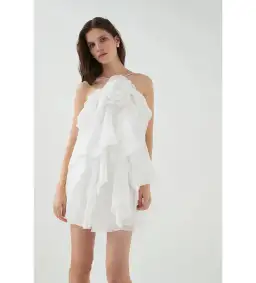 Aje Pandorea Layered Mini Dress Ivory Size AU 14