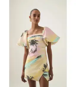 Aje Paradise Wrap Front Mini Dress Sunset Sky Size AU 10