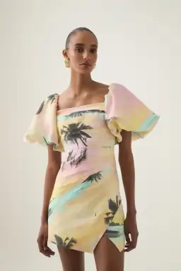 Aje Paradise Wrap Front Mini Dress Sunset Sky Size 14